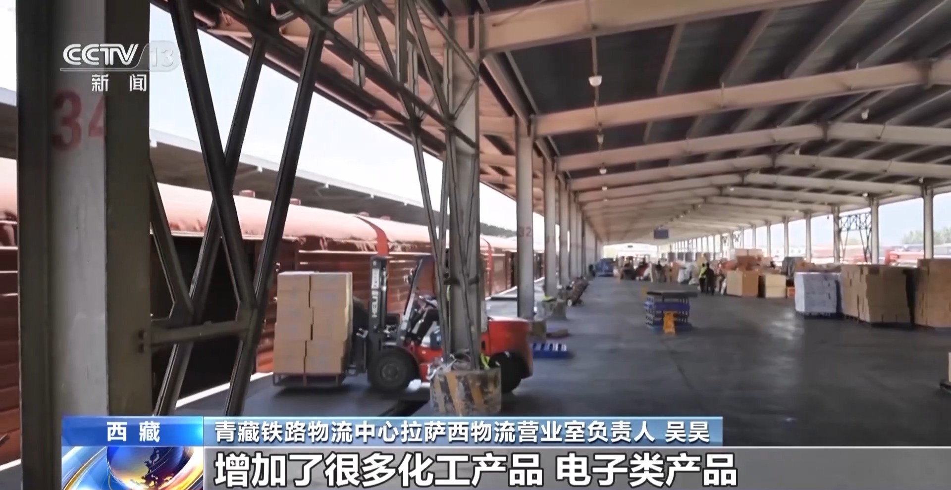 青藏鐵路物流中心拉薩西物流營業(yè)室負(fù)責(zé)人 吳昊:以前我們這邊到達(dá)量還是比較單一的,也就是一些糧食、飲料、建材之類的,現(xiàn)在到達(dá)的物品比較多元,增加了很多化工產(chǎn)品、電子類產(chǎn)品。