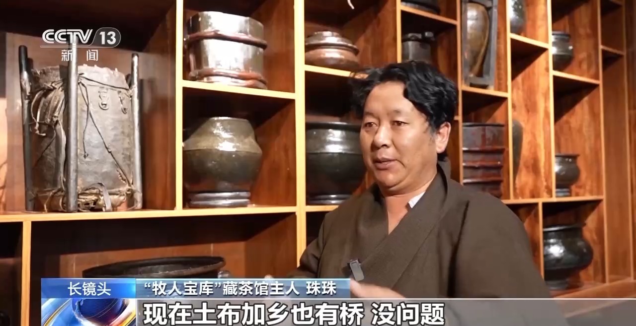 在帶記者欣賞民俗物品、觸摸歷史的同時,珠珠也邀請記者像藏族同胞一樣,喝上一杯熱騰騰的酥油茶。