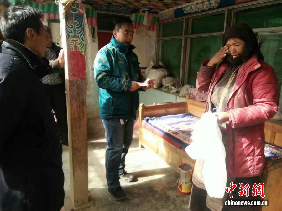 晉美參與扶貧幫困工作期間,一位幫扶戶流下激動(dòng)的淚水。 受訪者供圖