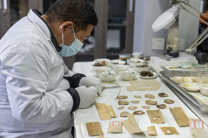 “貝葉經(jīng)修復技術在全世界沒有統(tǒng)一的標準,也沒有具體的修復流程。我們是一步步探索和創(chuàng)新,才取得了重要突破?!辈歼_拉宮管理處文??乒ぷ魅藛T冷本凱介紹說。
