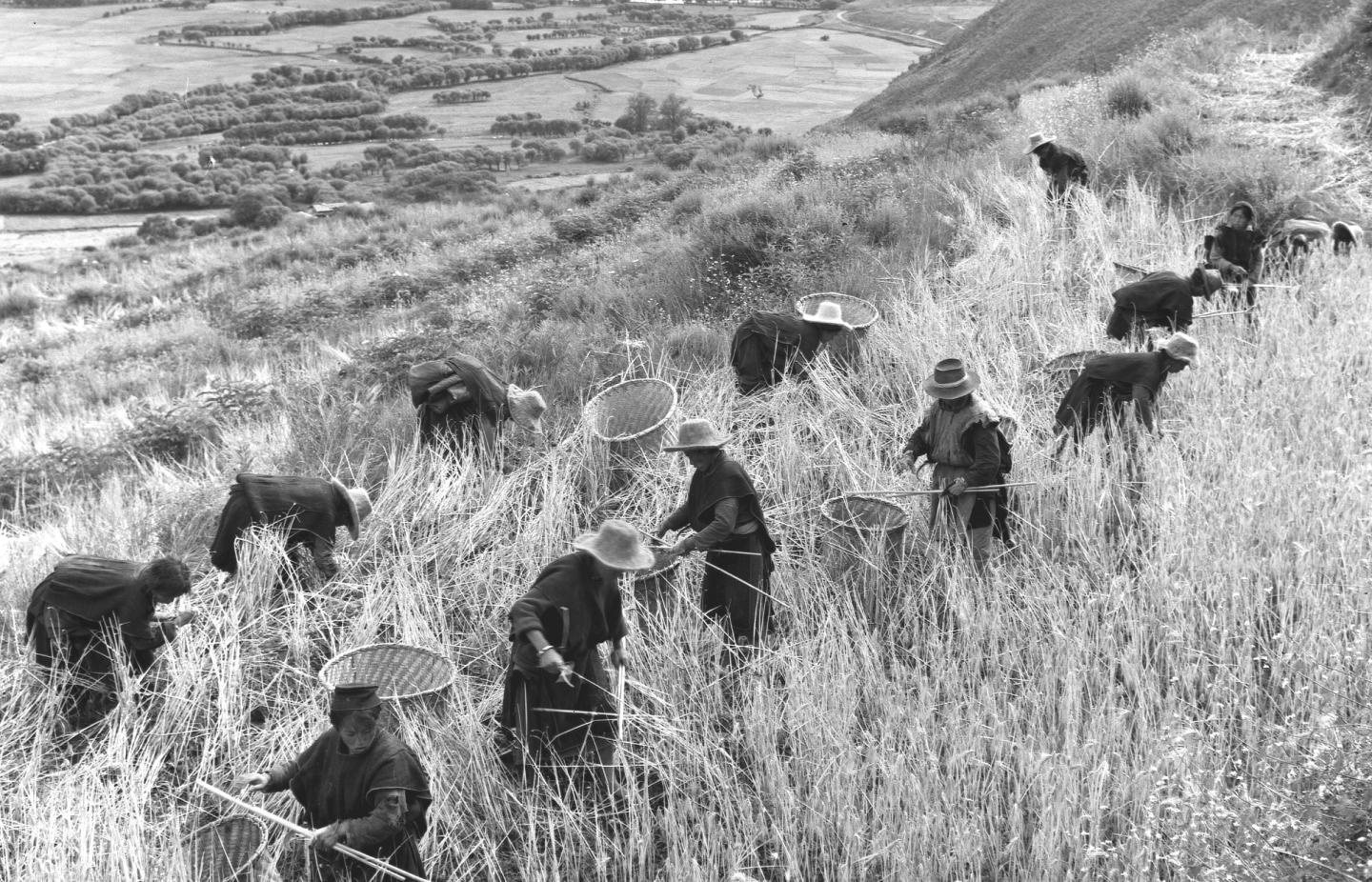 1965年,堆龍德慶縣(現(xiàn)為堆龍德慶區(qū))南崗鄉(xiāng)互助組組員們在收割莊稼。新華社記者 吳祖政 攝