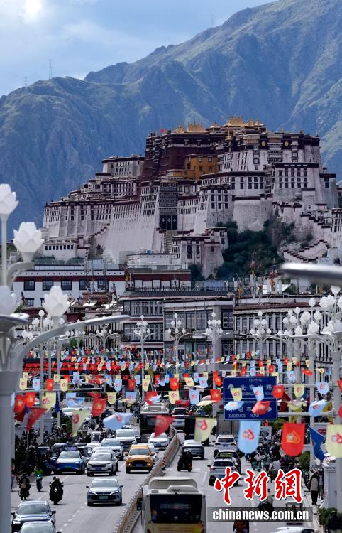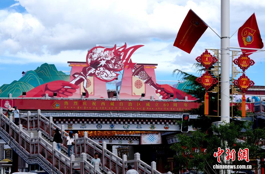 8月19日,隨著西藏自治區(qū)成立60周年慶?;顒优R近,拉薩氛圍濃。拉薩街頭,處處是張燈結(jié)彩的盛景,洋溢著一派祥和與歡騰的氛圍。圖為拉薩裝扮一新的街頭。中新社記者 李林 攝
