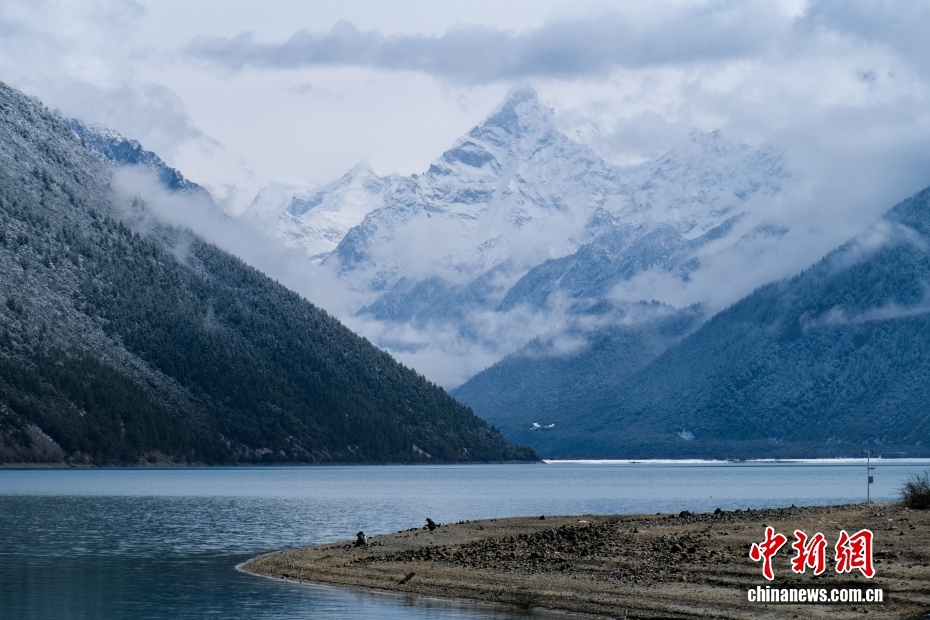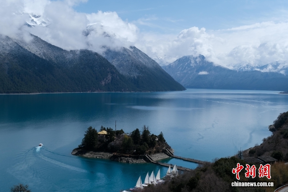 位于西藏林芝的巴松錯迎來一場春雪,雪后風(fēng)光如畫。圖為巴松錯與遠處的雪山風(fēng)光。中新社記者 江飛波 攝