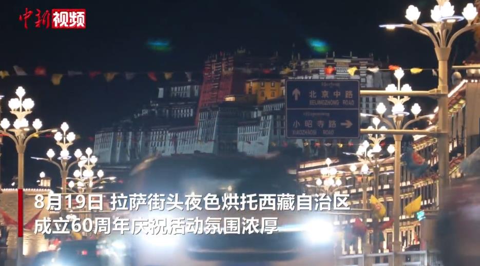 8月19日,拉薩街頭夜色烘托西藏自治區(qū)成立60周年慶祝活動氛圍濃厚。隨著西藏自治區(qū)成立60周年慶?;顒优R近,拉薩街頭彩旗飄揚(yáng)、人行天橋裝扮一新、燈光秀炫彩奪目,處處洋溢著一派祥和歡慶的氣氛。(李林 旦增卓瑪 制作 王嘉怡)