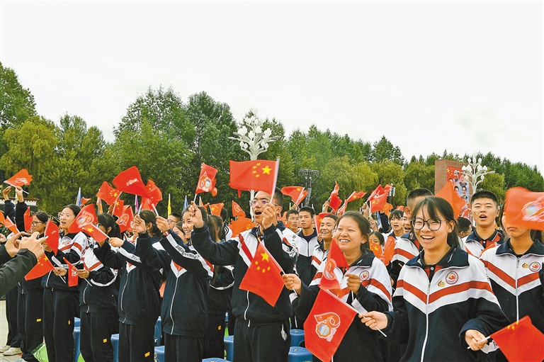 臺下的觀眾揮舞國旗。記者 旦增蘭澤 攝