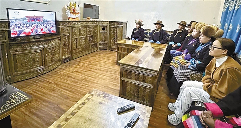 人民銀行日喀則市分行駐昂仁縣日吾其鄉(xiāng)日蘇村、西嘎村、普夏村、措嘎村、央曲村工作隊,組織村“兩委”班子、黨員干部、群眾集中收看了慶祝西藏自治區(qū)成立60周年大會實況直播,共同見證了這一重要歷史時刻。觀看過程中,大家心情激動,普夏村老人扎西表示:“以前怎么都不敢想,坐在家里就能看到拉薩的場景,在中國共產(chǎn)黨的領導下,我現(xiàn)在過上了以前想也不敢想的幸福生活,相信以后的生活會越來越好!”